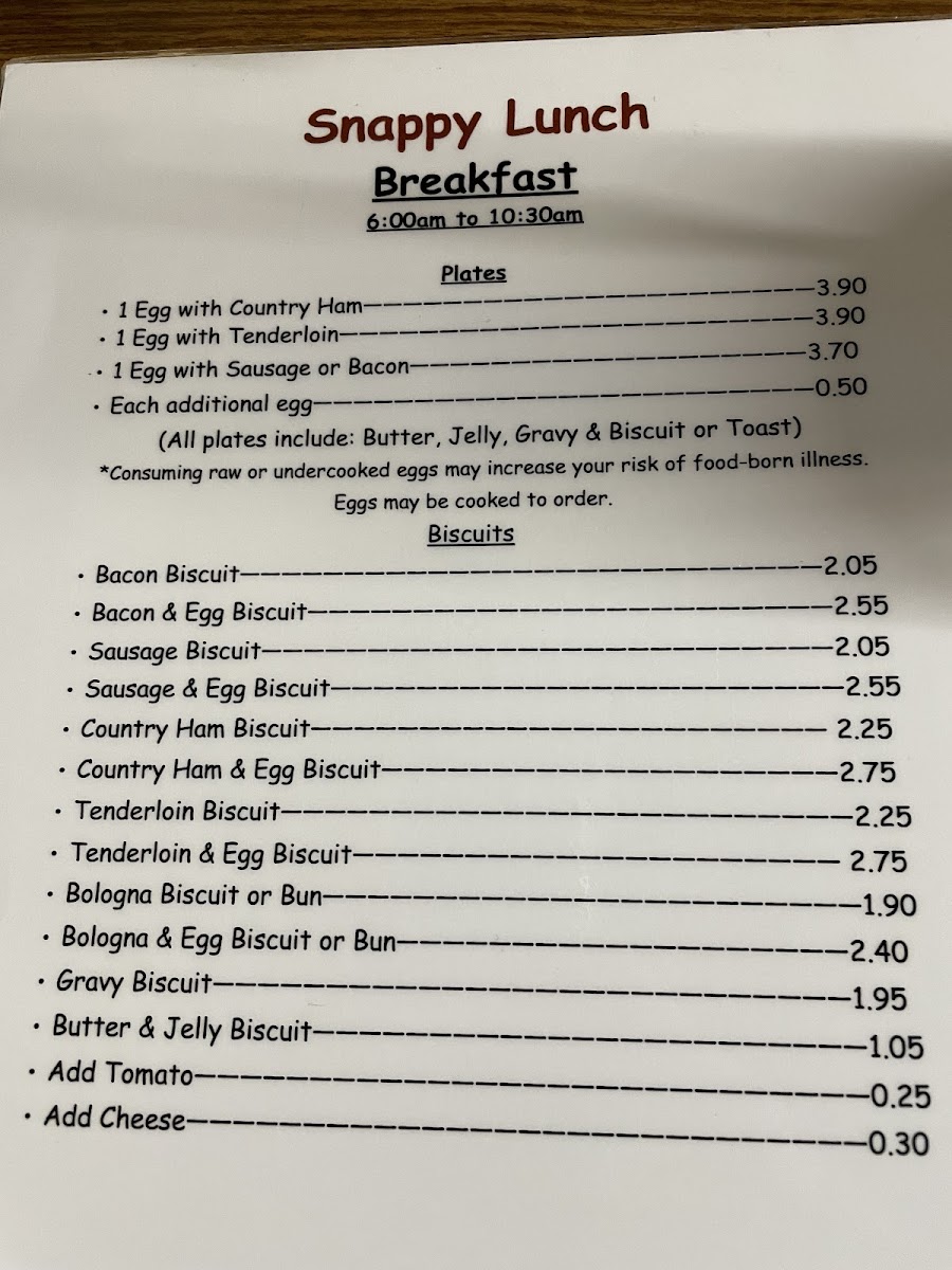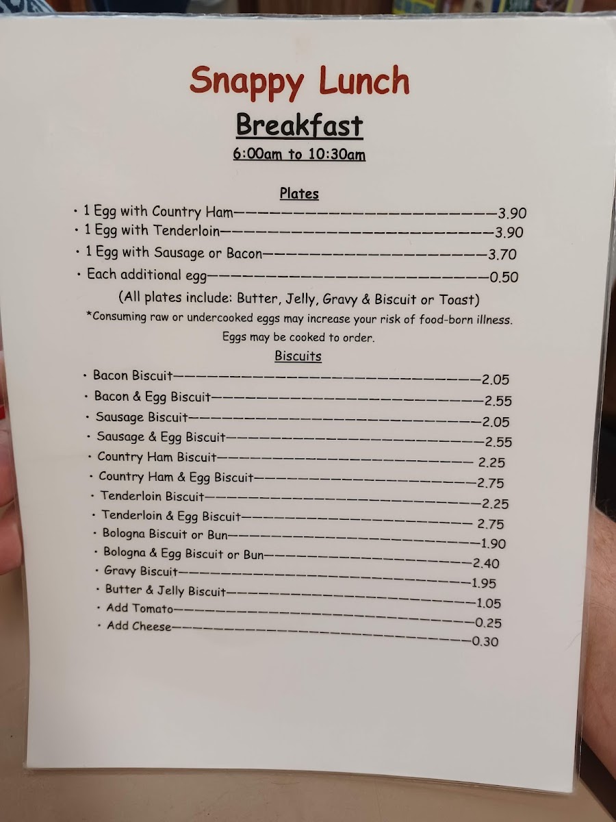 Snappy Lunch Menu (2025 Update)